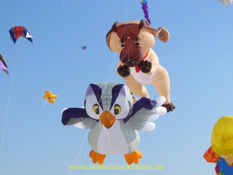Das Wetter bescherte uns nur Sonnenschein und täglich mehrere Stunden perfekten Wind, so dass alle Drachenflieger die prachtvollen Ergebnisse der Winterarbeit vorstellen konnten. Auch in diesem Jahr war die Schaffenskraft der internationalen Drachenflieger geprägt von Vorbildern aus der Natur. Es sind diverse Arten von Fischen, Echsen, Krabben, Vogeltieren u.ä. zu entdecken gewesen.